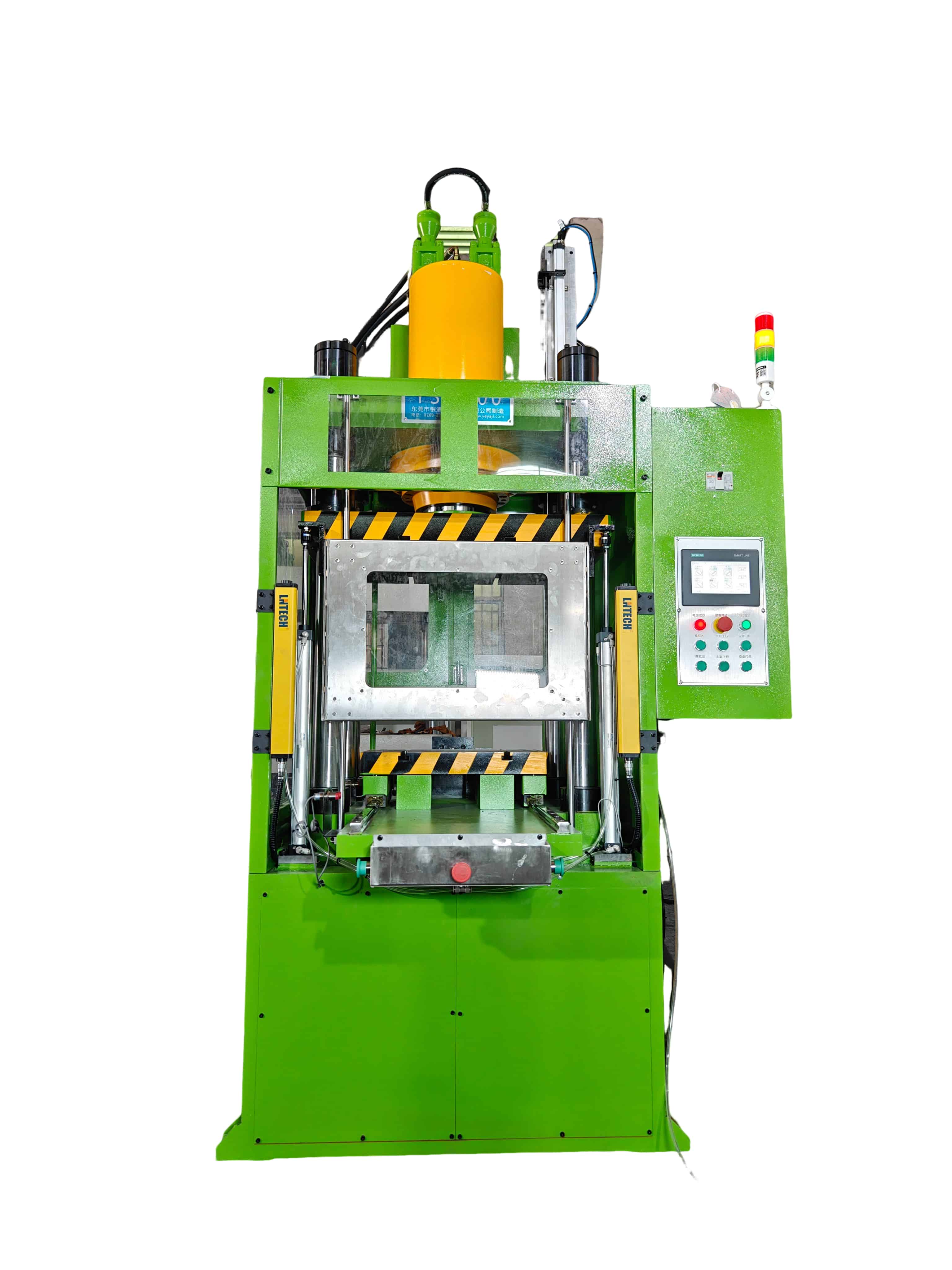 6.設備機身采用三梁四柱形式結構(四柱液壓機),剛性好,性能穩定。